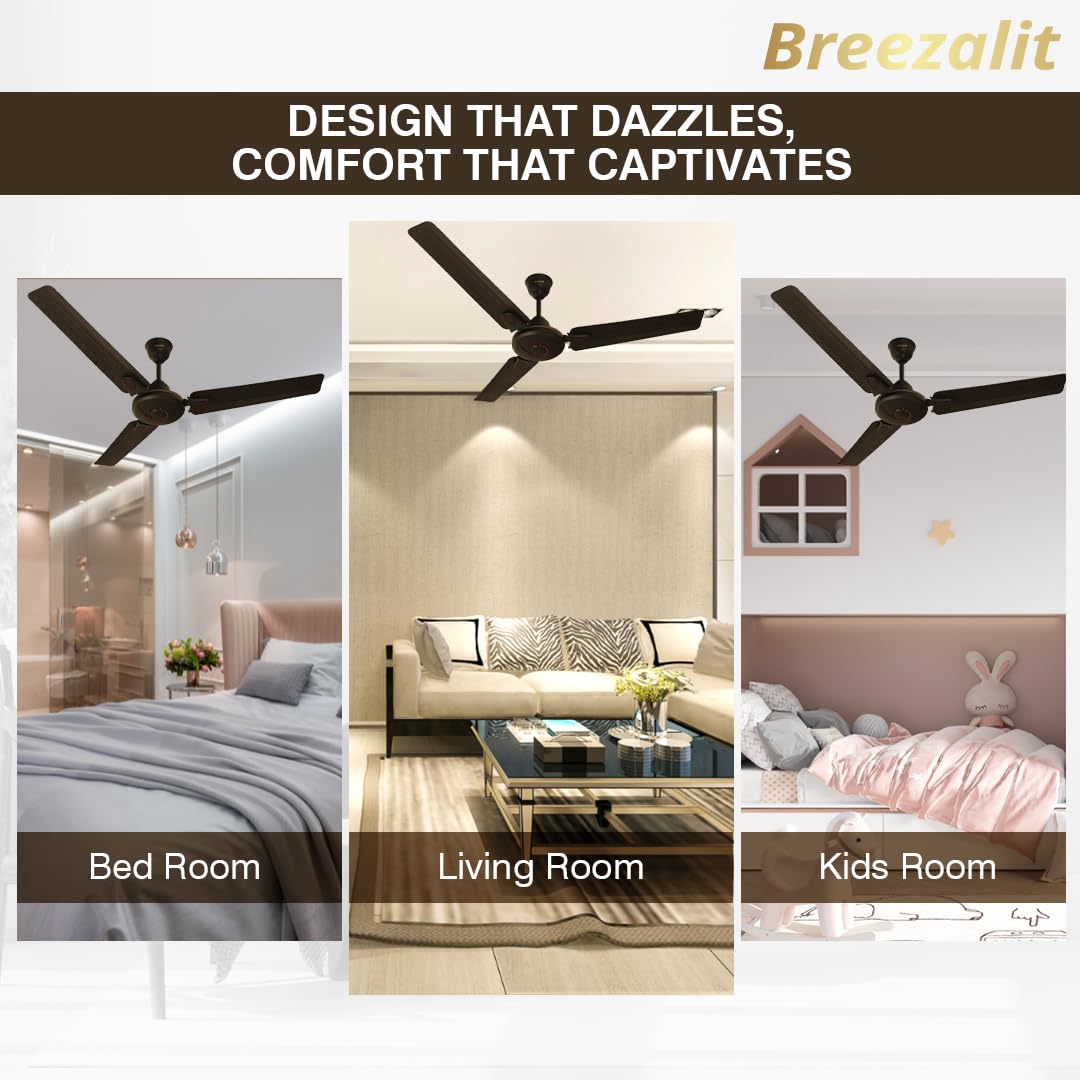 🔹 Looking for a powerful ceiling fan that combines performance with elegance? The Breezalit Breeza Metallic Gold Ceiling Fan is the perfect blend of high-speed airflow, silent operation, and energy efficiency. 💨 Why Breezalit? Unlike ordinary ceiling fans that struggle with weak airflow, this fan delivers 220 CMM of air with a powerful 400 RPM motor, ensuring instant cooling, even in large rooms. 💡 Did You Know? A well-ventilated room improves focus, comfort, and relaxation. Our high-speed 100% copper motor ensures smooth, noiseless operation while reducing energy consumption. 🎨 Designed to Impress: Featuring a sleek glossy white finish, this fan blends seamlessly with modern interiors while offering corrosion-resistant plastic blades for long-lasting performance. 🏡 Where Can You Use It? Whether it's your living room, bedroom, office, or balcony, this energy-efficient fan provides consistent cooling and unmatched durability.