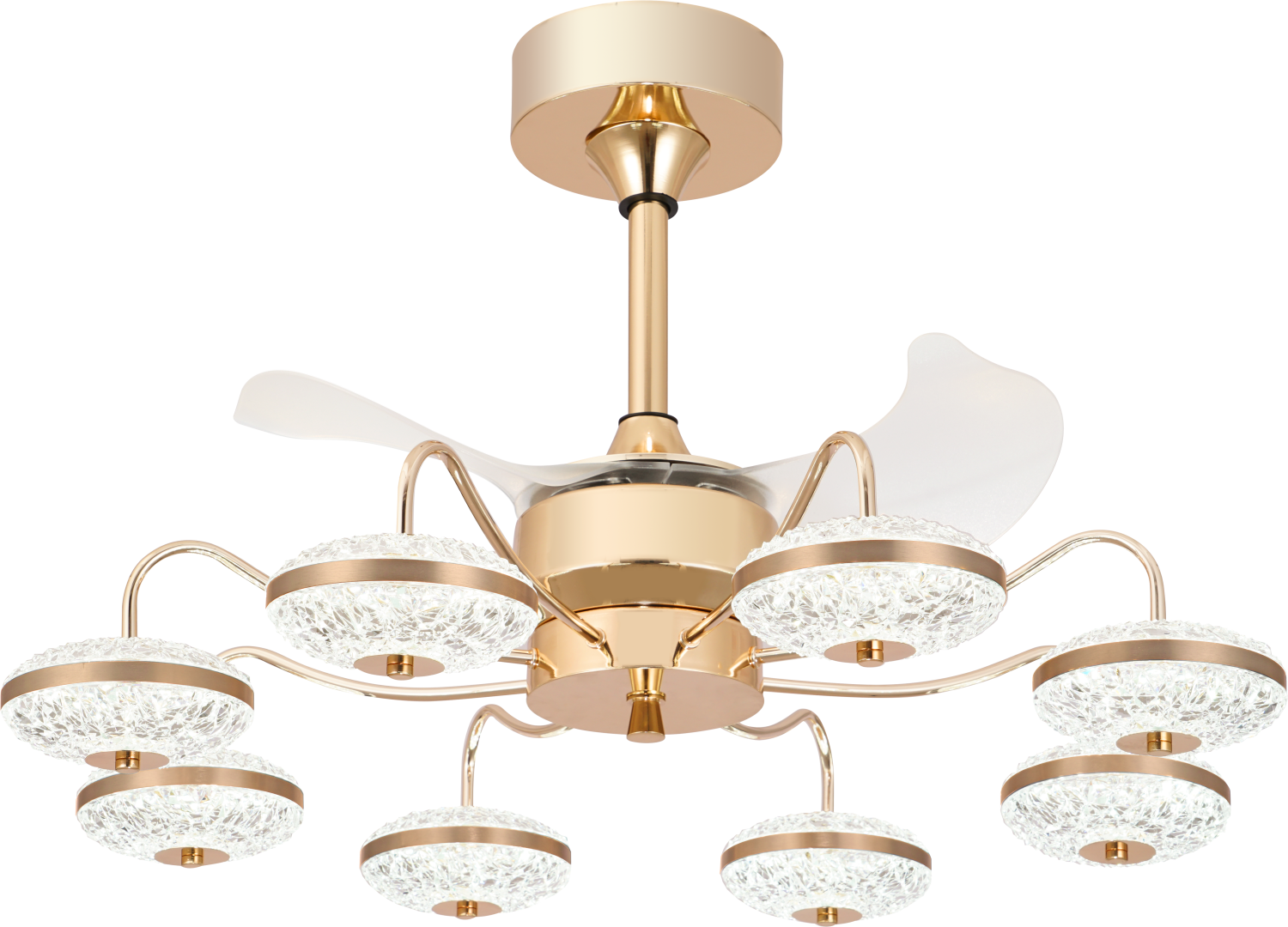 The Breeze Lux Chandelier Ceiling Fan BL-133 is a compact yet luxurious fan that combines modern chandelier elegance with silent cooling technology. With its 22-inch size, premium frosted blades, and a stunning gold finish, it’s the perfect centerpiece for stylish bedrooms, dining spaces, and apartments.