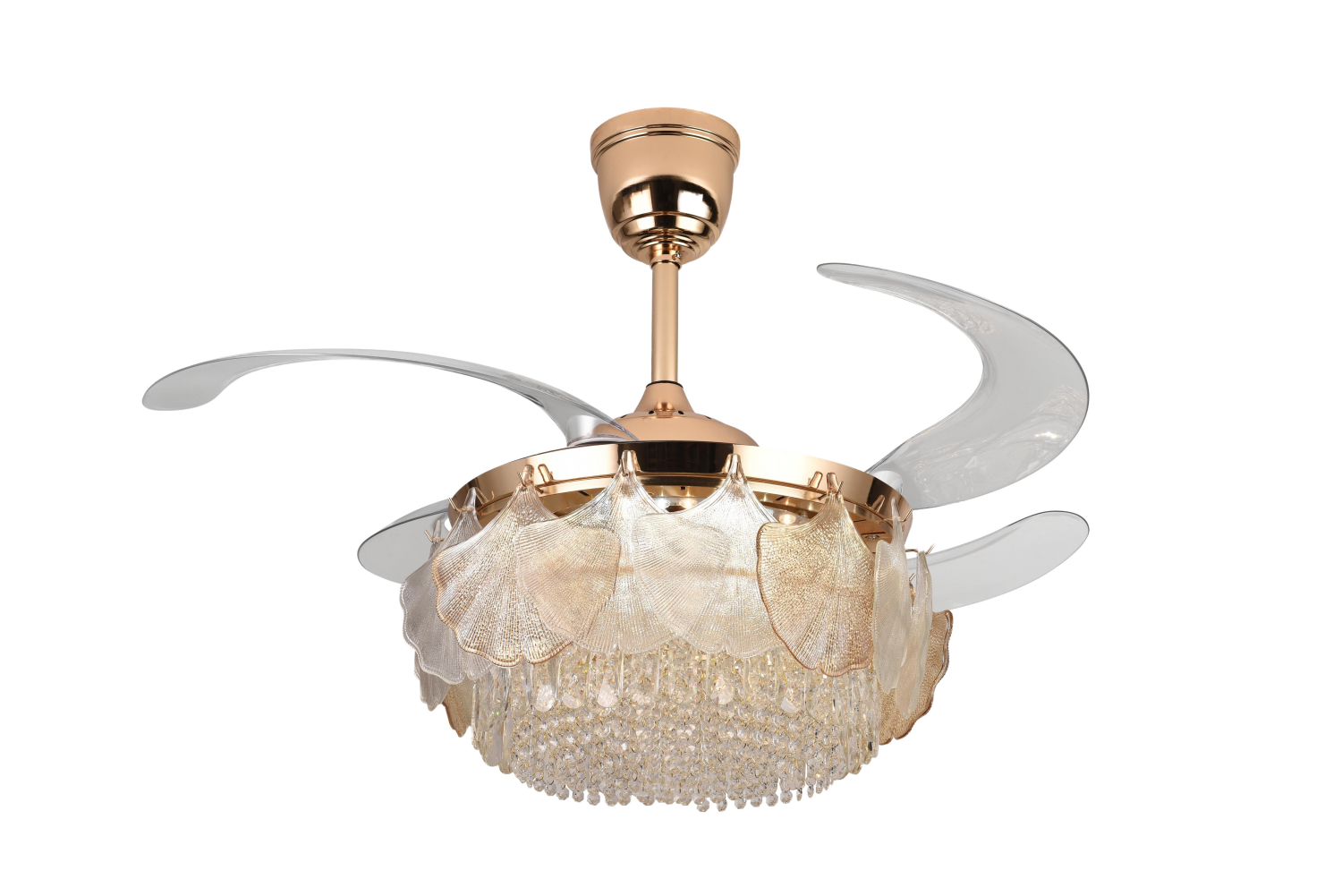 ✔️ S-Gold finish with transparent blades – luxury look for modern homes