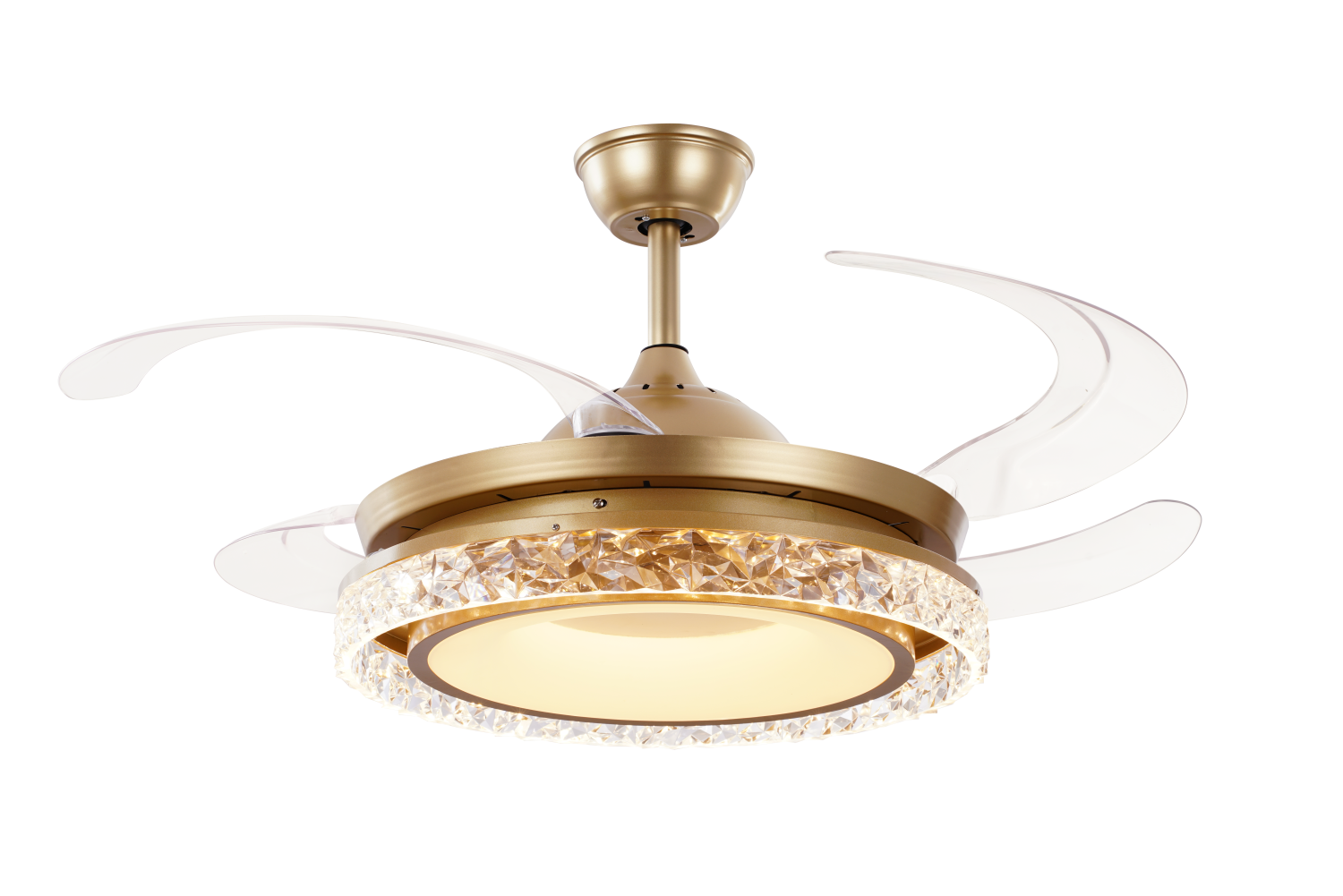 ✔️ Gold finish with transparent blades – luxury design for modern homes