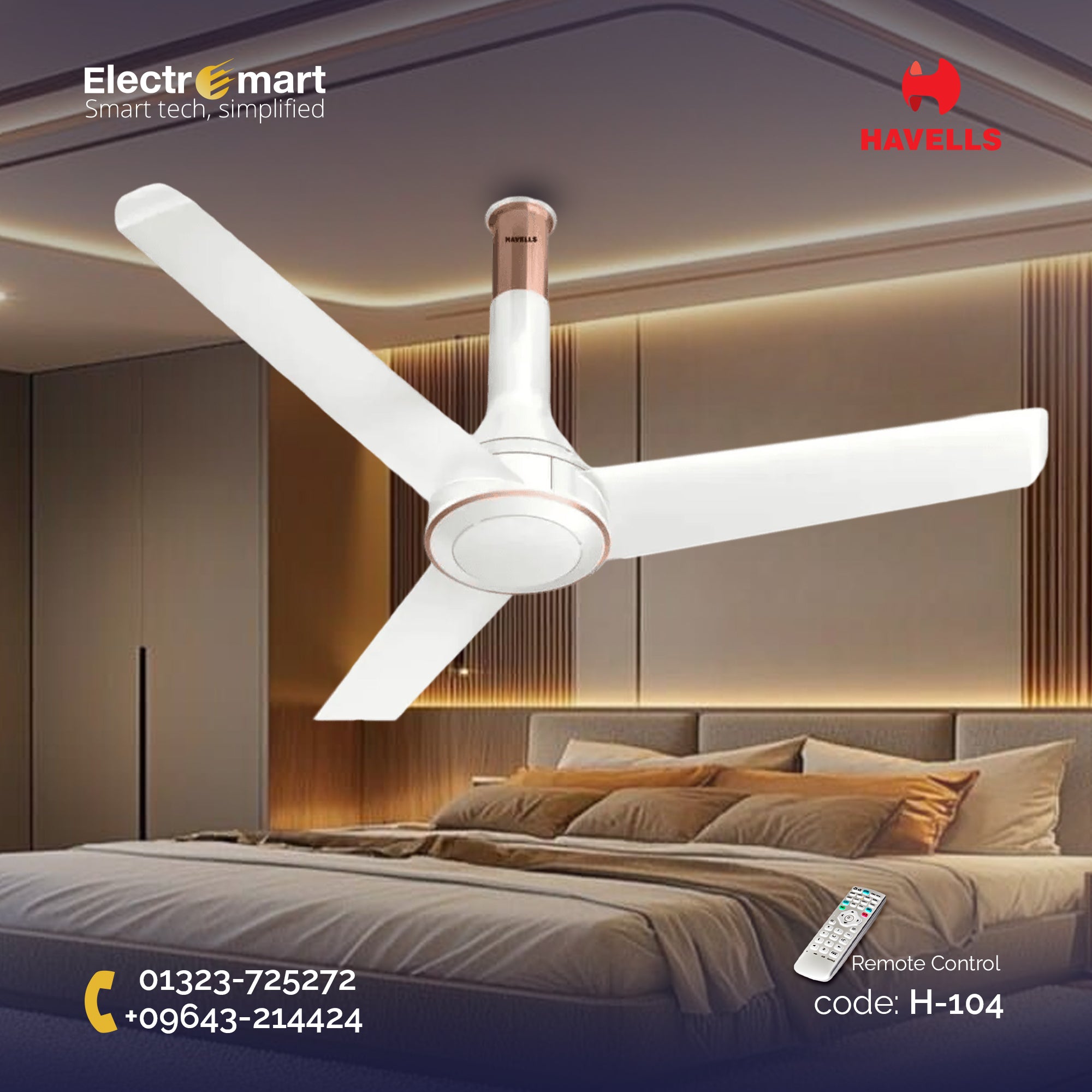 Havells Crista BLDC - 1200mm Dust Resistant coating Remote control Ceiling Fan (Pearl White)