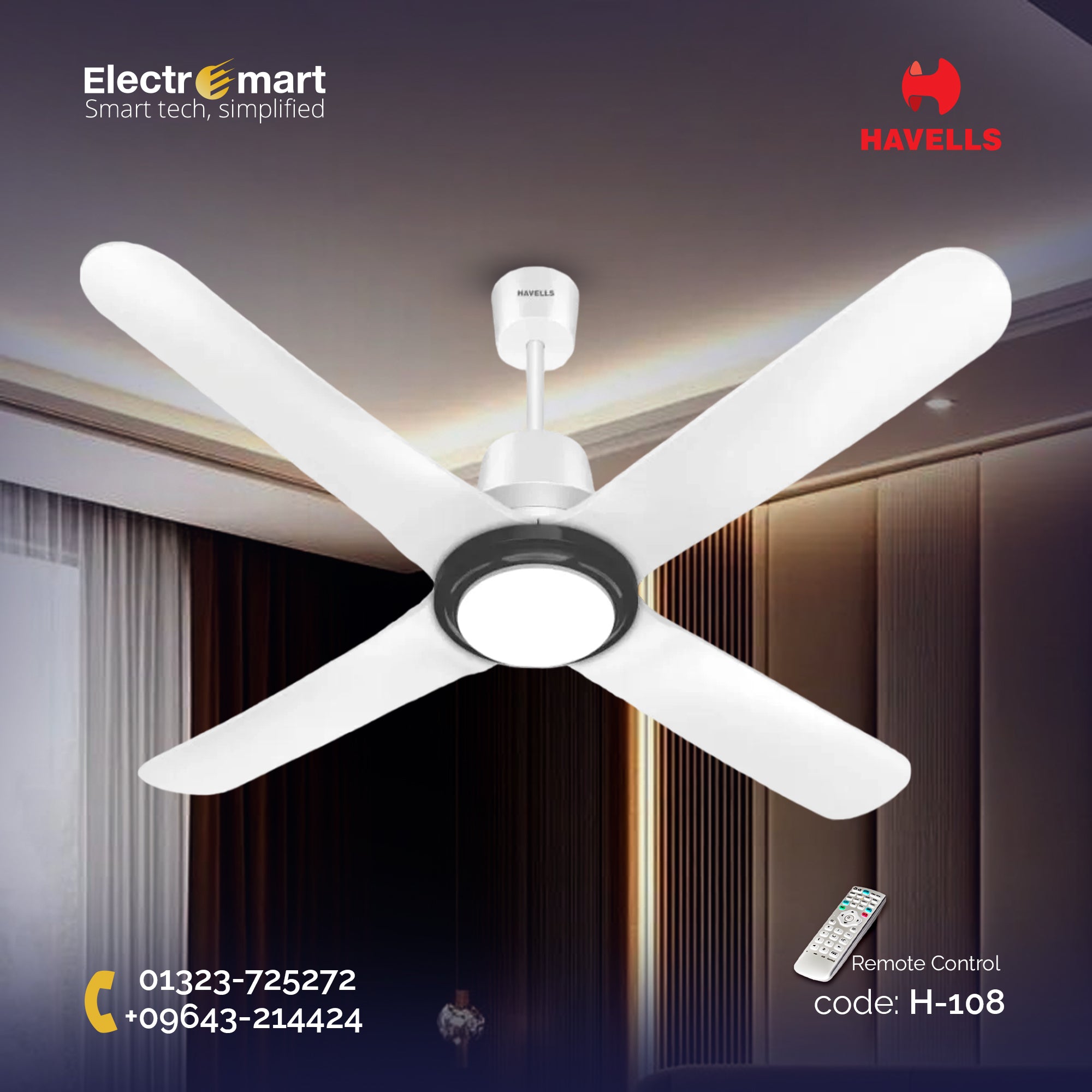 Havells Libeccio BLDC UL - 1200mm ABS Blades RF remote 4 blade Underlight Ceiling Fan (Pearl White)