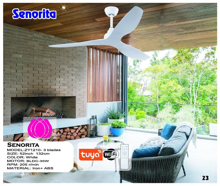 The Senorita 52" Smart Ceiling Fan (White) combines elegance, efficiency, and intelligent control — designed for premium homes, cafes, and lounges.